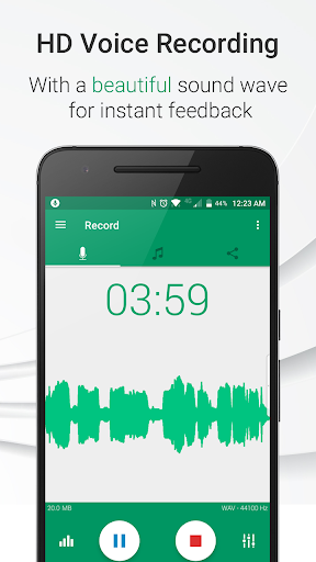 • Grabar: cree grabaciones de voz con un gráfico de onda en vivo y sonido suave a medida que graba para identificar fácilmente cuando reciba los niveles adecuados. Grabaciones de alta calidad, sin ruido de fondo, y gratuita.