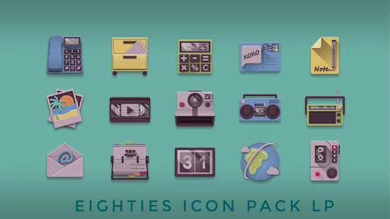 Eighties iconos es el paquete de iconos de ochentas (icon pack) que le proyecto en la década de los 80 ... El teléfono se ven fantásticos y retro. Todos los iconos se han rediseñado con un estilo de los años 80 y colores realistas son divertidos, con un acento oscuro ...