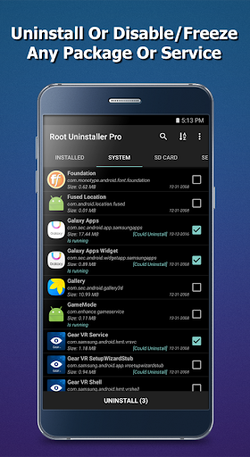 Nota: - Root Uninstaller Free version aplicaciones límite de desinstalación 30 sistema, la actualización a Premium (Pro) para obtener las características completas sin límite. - Desinstalar paquetes críticos (del sistema) puede hacer que el teléfono no funcione correctamente, asegúrese de que sólo desinstalar paquetes que sabes seguro que no son necesarios. - No nos hacemos responsables de los daños causados por los paquetes del Sistema de desinstalación.