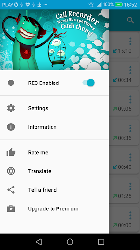 SI NO FUNCIONA EN SU TELEFONO O NO GRABA LA VOZ DEL LADO CONTRARIO: 1. Trate de mezclar diferentes configuraciones de grabación, se describe aquí: http://clevermobile.net/products/call-recorder/call-recorder-settings-configuration-instructions/ 2. Hay una limitación para algunos teléfonos que no admiten la grabación de la línea telefónica o bluetooth. Es un problema del controlador de audio realizado por el fabricante del teléfono.La lista de dispositivos y configuraciones soportadas está aquí: http://clevermobile.net/products/call-recorder/call-recorder-supported-phones-and-configurations-for-them/ Por favor, no de malas puntuaciones por eso. ¡Gracias!