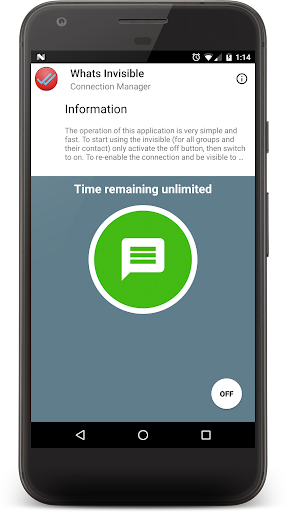 Por último, el menú de ajustes de la aplicación que va a encontrar una opción para determinar cuánto tiempo desea utilizar el modo de invisibilidad (temporizada).